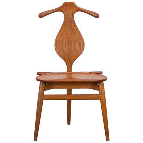 A valet chair by Hans Wegner is a unique and functional piece of furniture designed by the renowned Danish designer Hans Wegner. It combines the features of a traditional valet stand, where one can hang clothes, with a chair, providing a convenient seat while getting dressed or undressed.